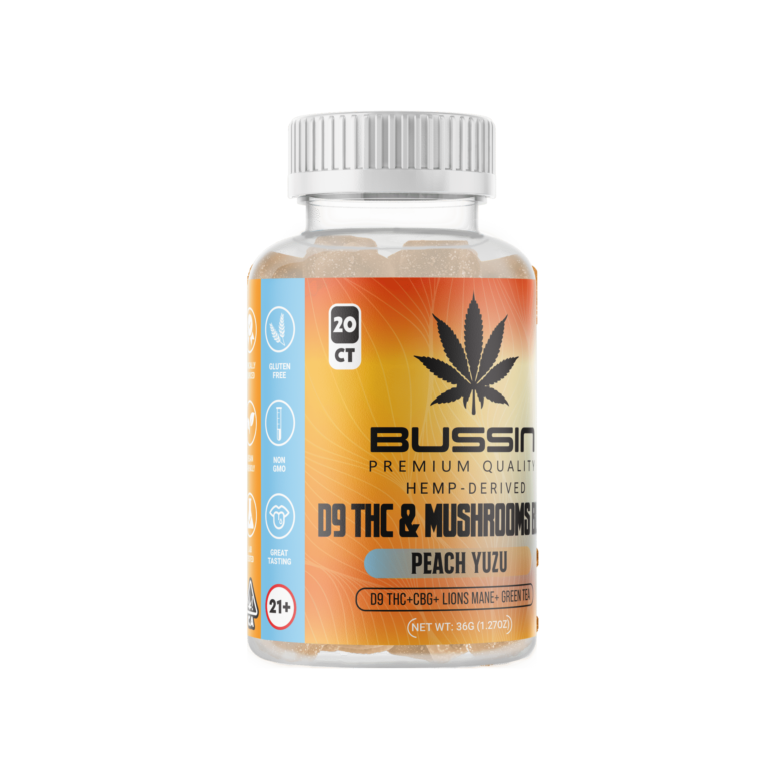 $24.99 — or Peach Yuzu Delta 9 Gummies – 20mg THC + Mushroom Blend