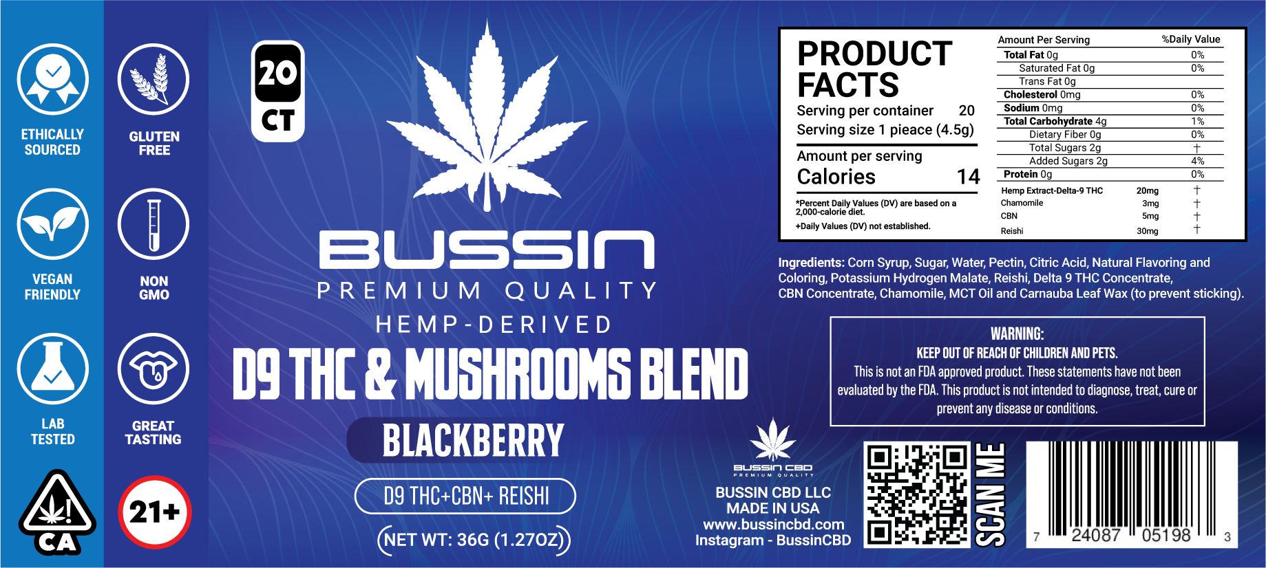 Blackberry Delta 9 THC Wind-Down Gummies – 20mg THC + Mushroom Blend