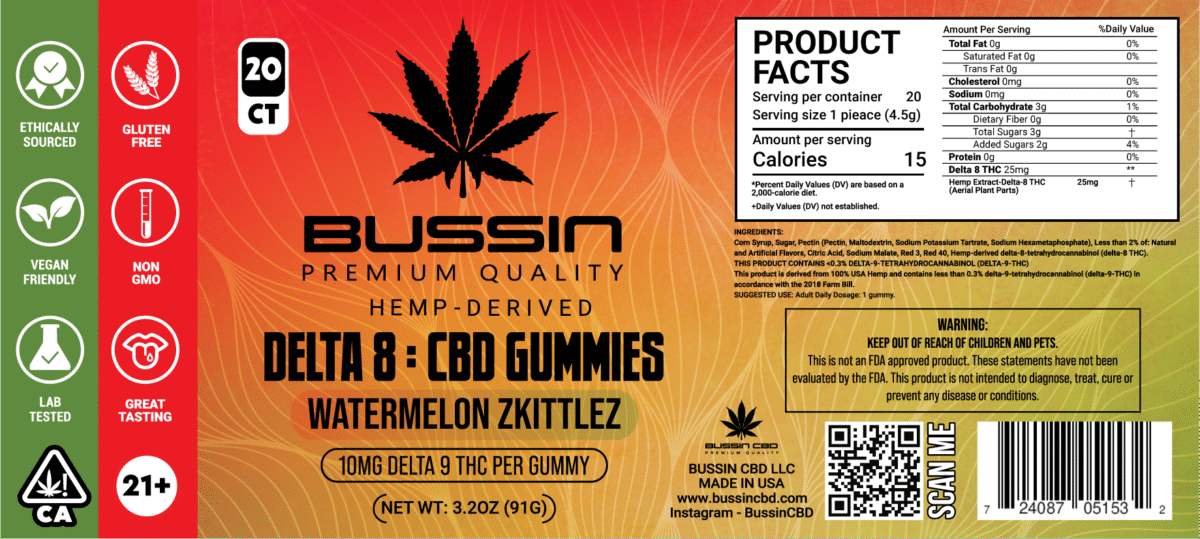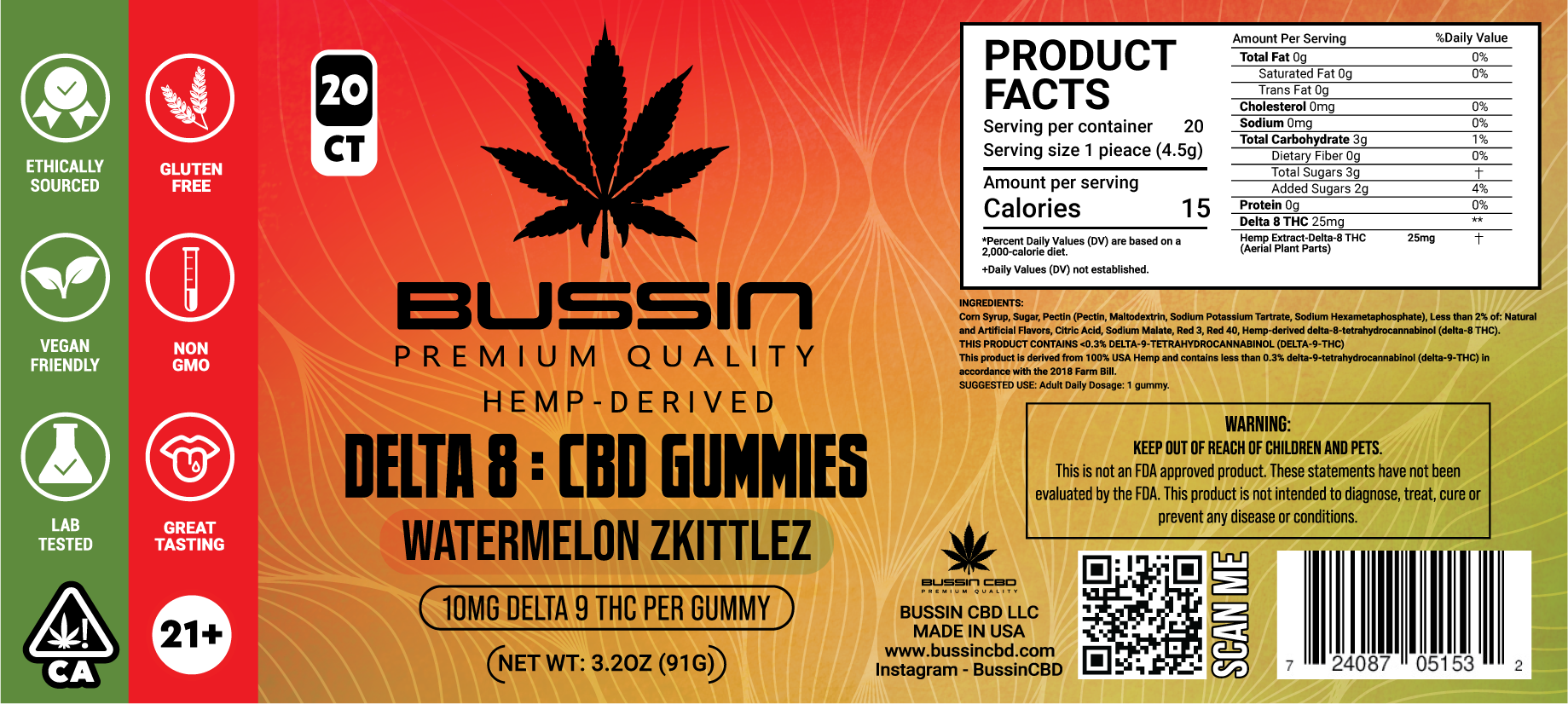 DELTA 8 CBD GUMMIES- WATERMELON ZKITTLEZ 10 mg