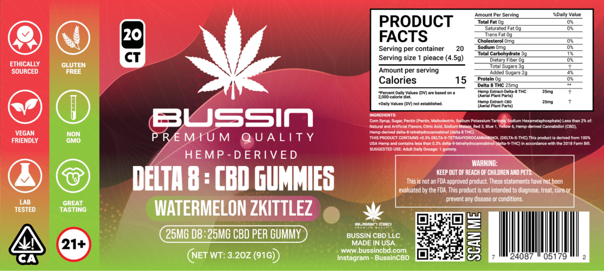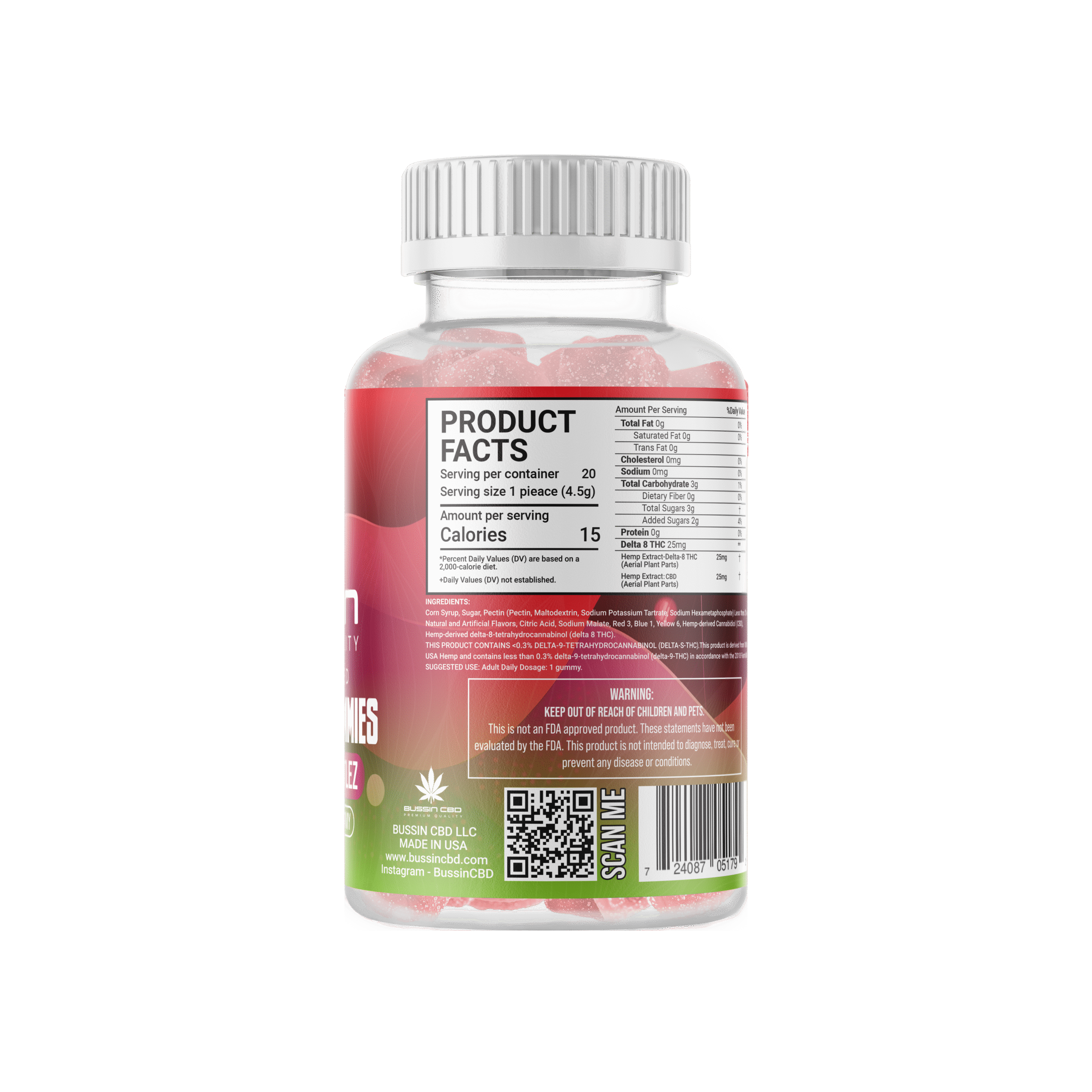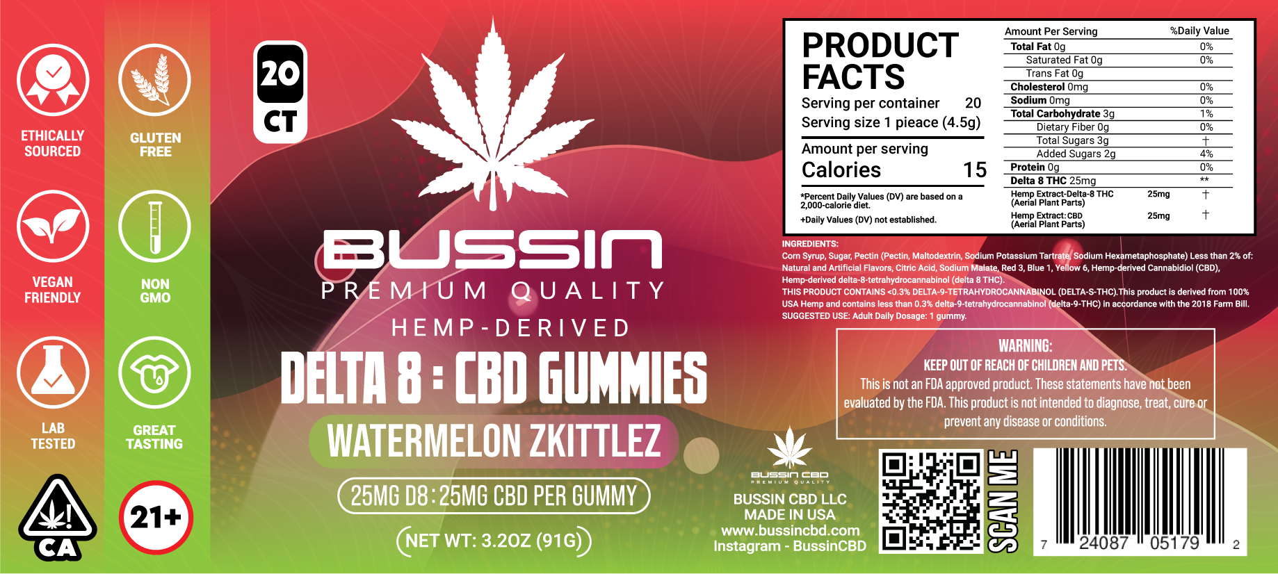 CBD and Delta 8 come together for a perfectly balanced experience. As your mind gently lifts into a euphoric calm, your body melts into deep, soothing relaxation. Each gummy bursts with the vibrant fusion of juicy watermelon and sweet Zkittlez, delivering a mouthwatering explosion of flavor with every bite.